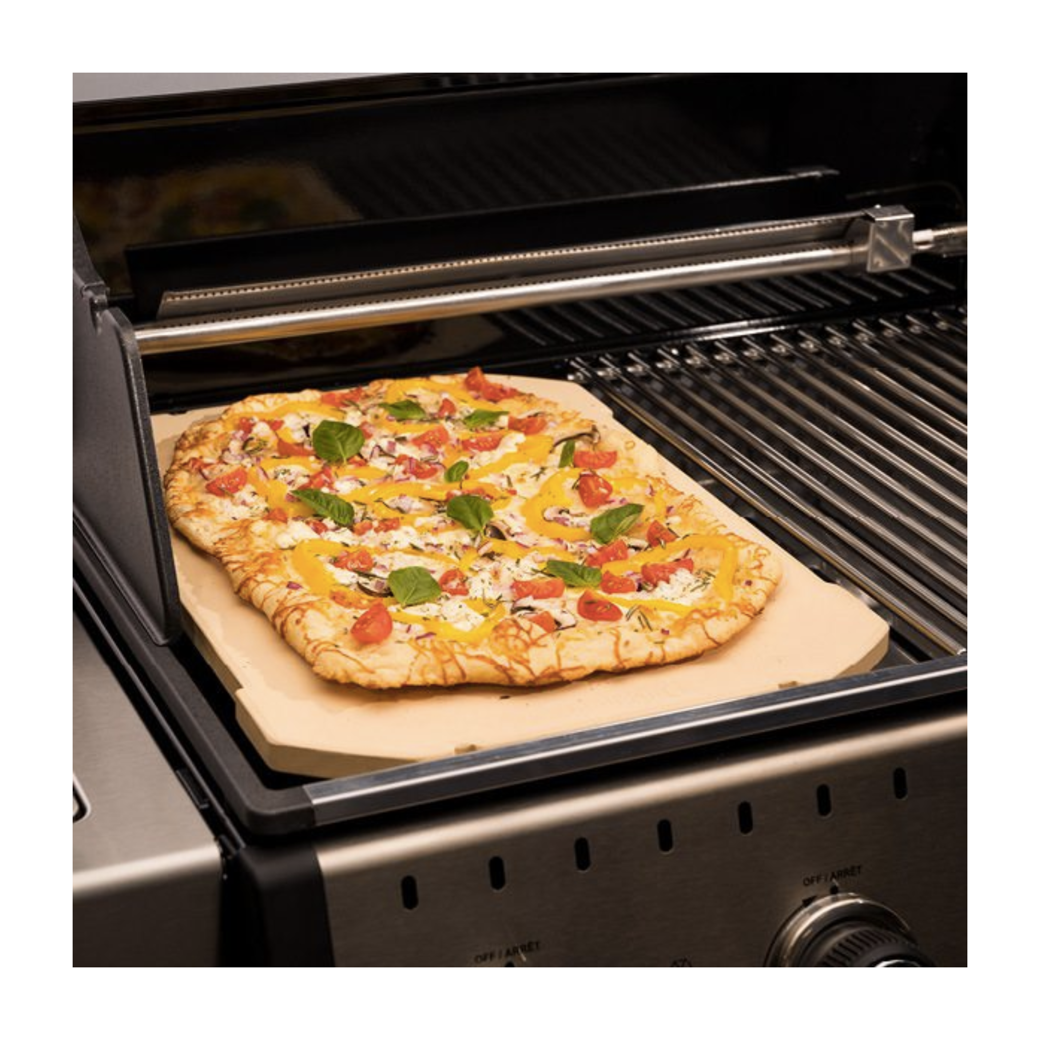 The exact fit rectangular pizza stone occupies the space of 2 Baron™ cooking grids to offer a large baking surface right on your grill. This reversible stone holds heat to quickly bake pizzas on the grill. The best way to get the perfect pizza crust. Each pizza stone fits between the rods on Regal™ stainless steel rod cooking grid or on top of the grilling surface of most grills.
