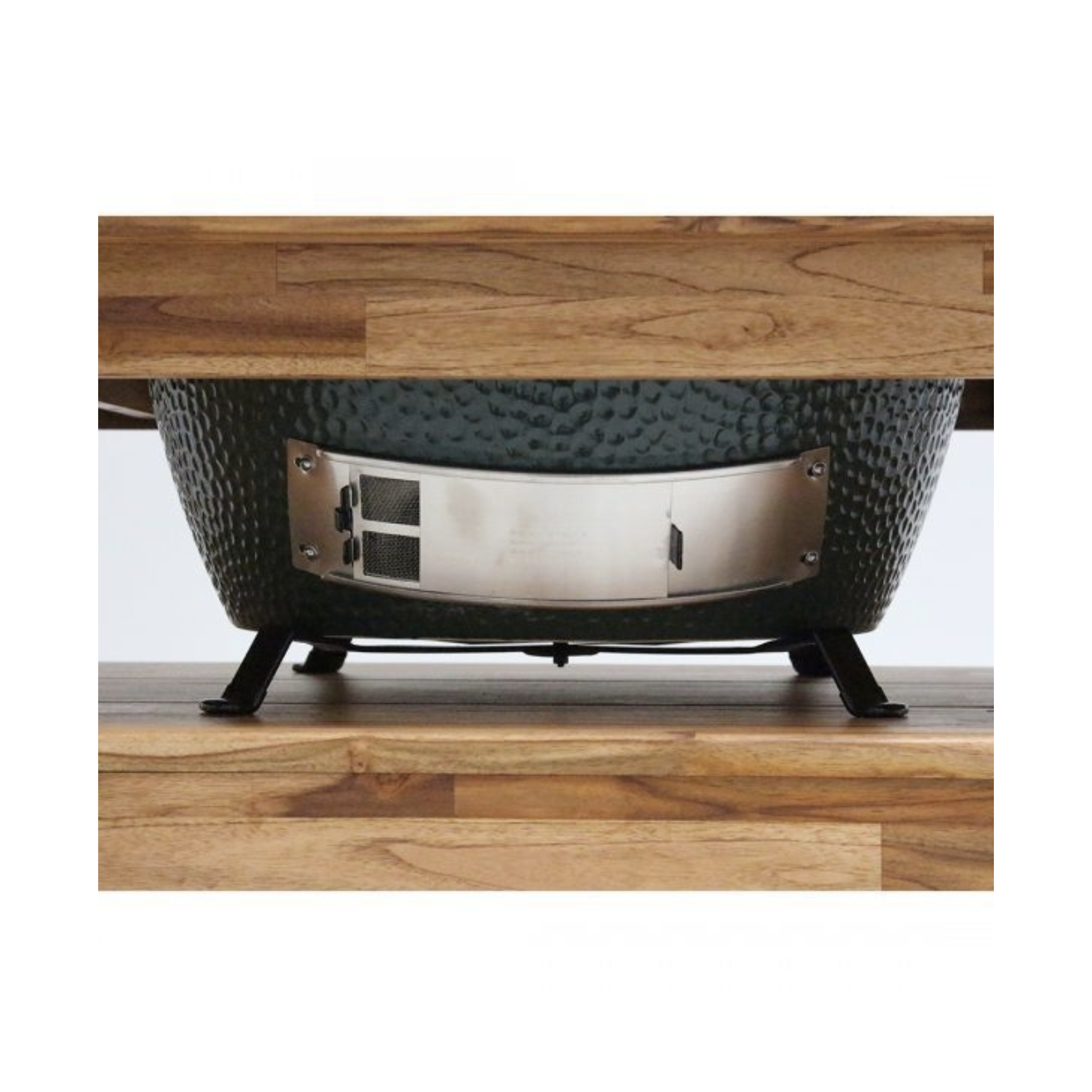 The metal Table Nest, which provides air flow beneath the EGG, is now an optional component for all Big Green Egg tables. The Table Nest is also useful for custom tables and outdoor kitchens.